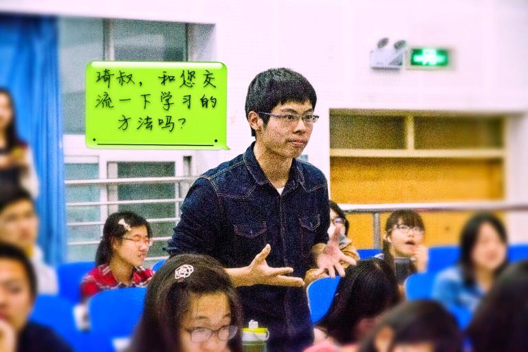 GRE,官方正式的说法是美国研究生入学考试,琦叔却给我们描绘了一个不一样的世界,GRE是一座高峰,是一场勇敢者的挑战,是一场与人生命运的较量,真正爱上单词爱上为梦想奋斗的日子。并不是每一个人生下来就可以拥有许多,琦叔的命运也并非坦途,也有困扰。琦叔以自己屌丝逆袭的经历激励我们,没有什么是人做不到的,大学的学习很重要,要抓紧每一个时间,每一个机会。琦叔以他的经历告诉我们,一个人活着就是要为自己的生活不断奋斗,一步步向前,大家都被这种来自心灵深处的魅力折服,现场报以热烈的掌声。
